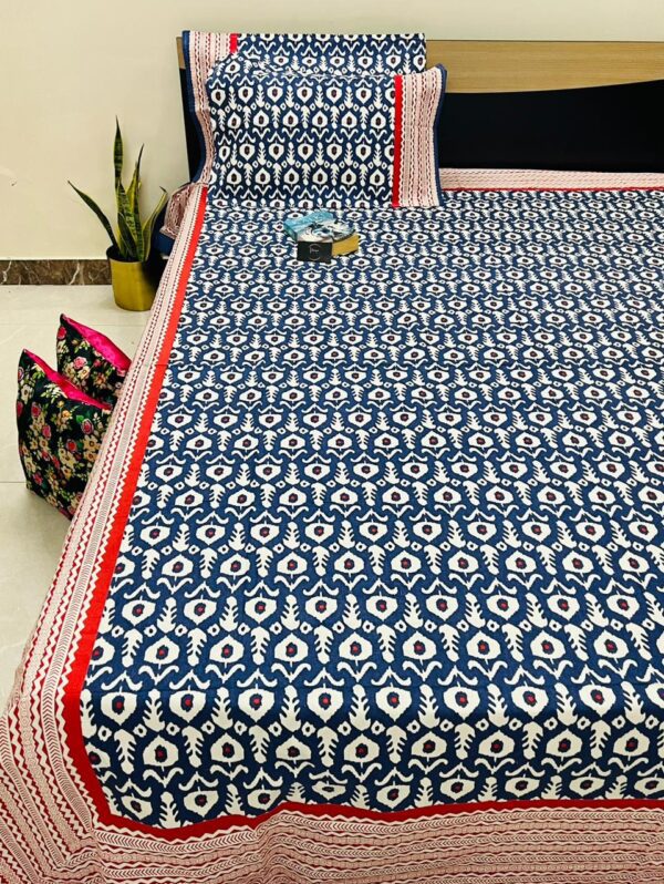 Navy Blue and Red Ikat Print Utsav Bedsheet