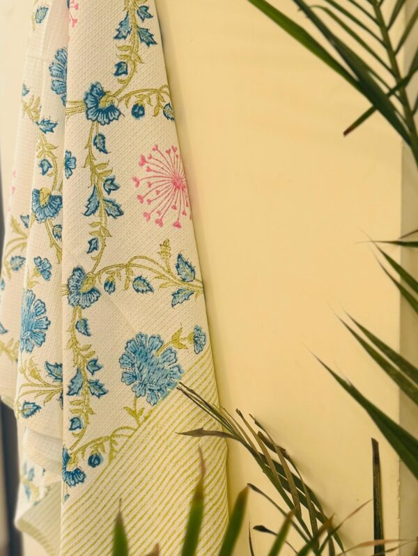 Blue Forest Hand Block Printed Waffle Towel